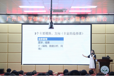 会上,健康学院党总支书记、副院长勉励新生们怀揣爱和理想,不断去追寻与探索。信息资源管理专业副主任谭静仪、健康服务与管理专业主任林爱华、眼视光学专业主任林智分别介绍了相关专业的发展历史、师资、课程、教学特色、实践资源等。