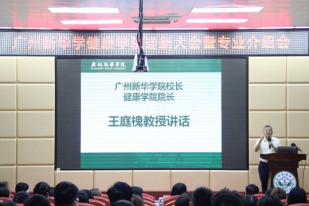 王庭槐指出,广州新华学院健康学院自建立以来,始终坚持强特色人才培养目标,逐步形成了理论与实践并重的应用型专业课程体系和多层次的实践课程体系。健康学院有丰富的教学资源和强大的师资力量,为同学们未来发展提供了很好保障,希望同学们要珍惜来之不易的学习机会,勇于追求、大胆尝试,为美好的未来而努力奋斗。