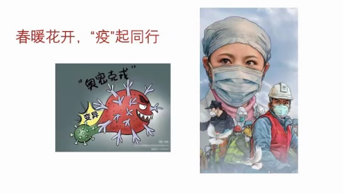 接着,李鑫以“春暖花开,疫起同行”为主题,采用文、图、视频相结合的讲解方式让同学们更加深入地了解到“奥密克戎”这个病毒的传播链及其传播快、隐匿性强的特点。随后李鑫结合现今校园疫情防控形势,号召学生共同战“疫”,从我做起,严格按照属地要求认真做好防控,相信我们一定会迎来春暖花开的那一天。