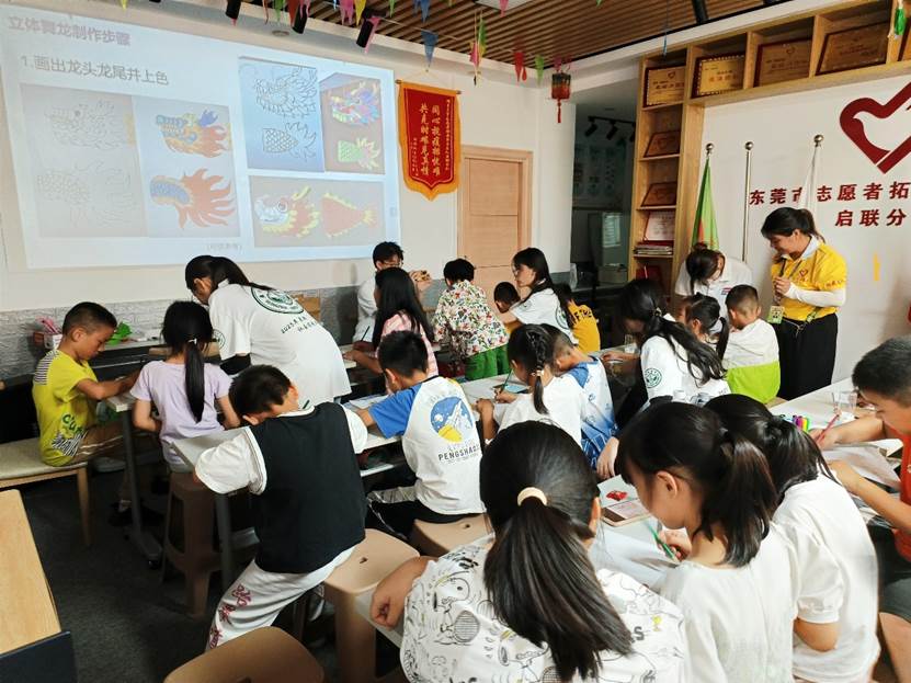 近日,实践队结合东莞市志愿者拓展服务总队启联分队关于《莞音律动•传承经典》关爱随迁子女成长公益教育项目,在东莞市塘厦镇启联志愿者塘厦基地火热开展社会实践活动。实践队成员们倾心奉献,开展了一系列别具特色的课程,包括文化传承、文明传承、快乐成长以及艺术修养提升等。
