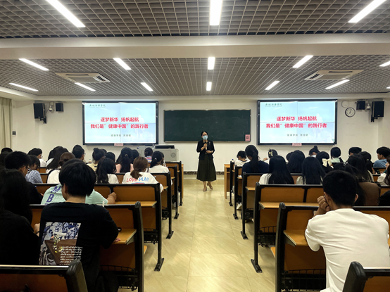 为了让健康学院青年学子明确自身责任和使命,以实际行动积极响应“健康中国”战略的号召,健康学院党总支于9月27日在广州校区开展以“逐梦新华,扬帆起航,我们是健康中国的践行者”为主题的思政第一课。此次主题课由健康学院党总支书记主讲,健康学院师生党员及2023级全体新生参加。