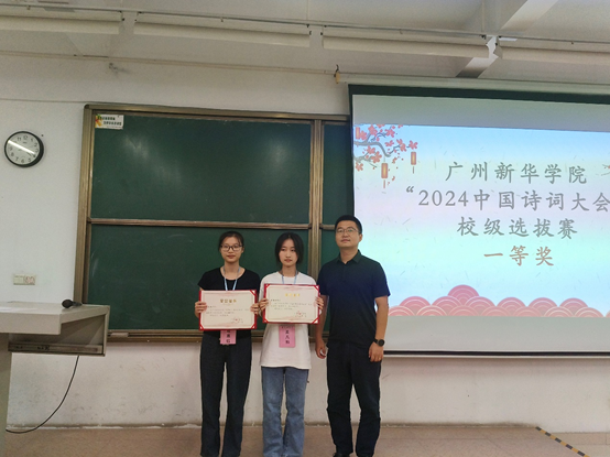 经过激烈角逐,比赛评选出一等奖2名,二等奖2名,三等奖4名。健康学院的吴凡熙、中国语言文学系的戴惠钰在比赛中脱颖而出,将代表学校参加“2024中国诗词大会”广东省选拔赛。
