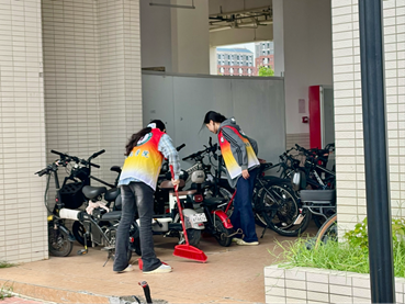 志愿服务队针对几大区域开展了“单车归位与环境整治”志愿服务行动,着力营造更加安全、整洁的出行环境。经过志愿者们的共同努力,停车区现已焕然一新。车辆整齐排列,犹如仪仗队般井然有序;地面清扫洁净,无杂物滞留,蚊虫孳生条件得到有效控制。