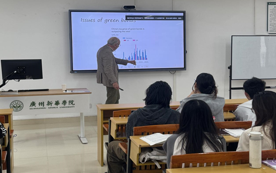 11月13日,伦敦政治经济学院教授、国际经济学家,广州新华学院经济与贸易学院金融工程专业首席教授、投资学专业学科带头人Ronald Anderson(以下简称“Anderson教授”),携同沈曼诗老师为2023级互联网金融专业学生带来主题为“绿色金融浪潮中的新力量:浅谈气候挑战与创新机遇”的专业英语示范课,以双语教学融合学术前沿与实践案例,为师生开启绿色金融领域的探索新窗。