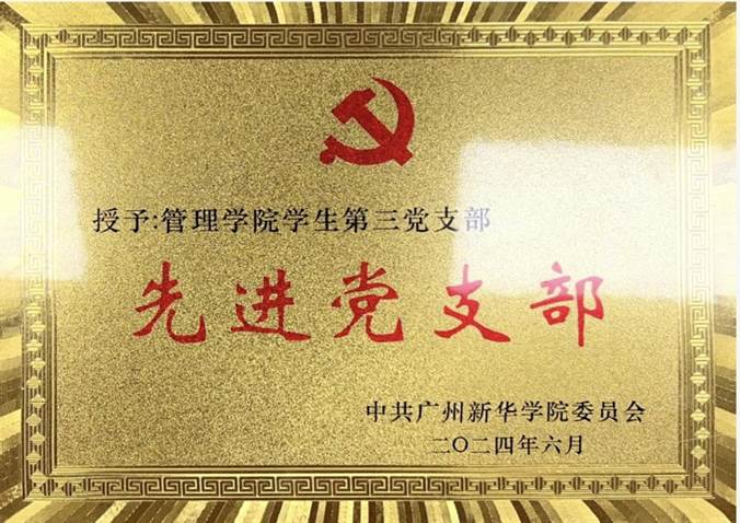 管理学院学生第三党支部荣获广州新华学院“先进党支部”荣誉称号
